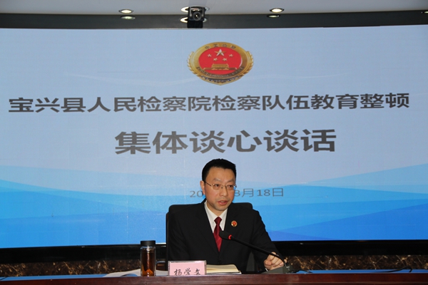 3月18日上午,宝兴检察院开展队伍教育整顿集中谈心谈话会。院党组书记、检察长杨学文主持谈话会。