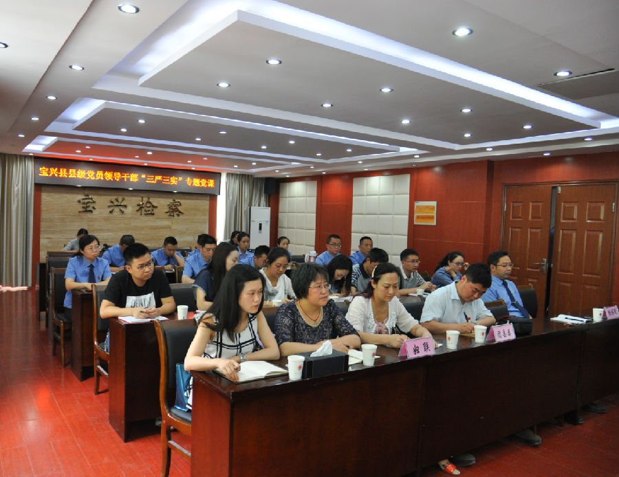 6月17日,宝兴县检察院召开县级党员领导干部“三严三实”专题党课辅导会,院党组书记、检察长陶涛为该院、县妇联、团县委全体干部职工作了《深入践行“三严三实”要求作组织放心、人民满意好干部》的专题党课辅导。