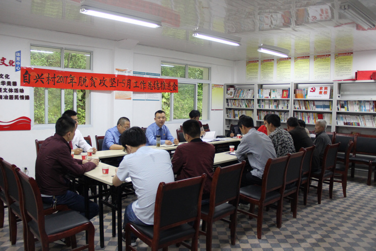 走访结束后调研组一行在自兴村活动室召开“自兴村2017年1—5月脱贫攻坚工作总结推进会”。会上,陶涛检察长就自兴村脱贫攻坚取得的成绩给予高度肯定:贫困户的居住条件有了很大改善、生活环境也有了较大提升、脱贫产业也有序发展。他强调,帮助贫困户脱贫是一项关乎群众切身利益的民生工程,必须高度重视、将脱贫工作落到实处,全面脱贫的目标任重道远,对未脱贫的贫困户要加大帮扶力度、对已脱贫的农户继续帮扶,同时要激发贫困户的内生动力,鼓励他们奋发勤劳,早日脱贫奔康。