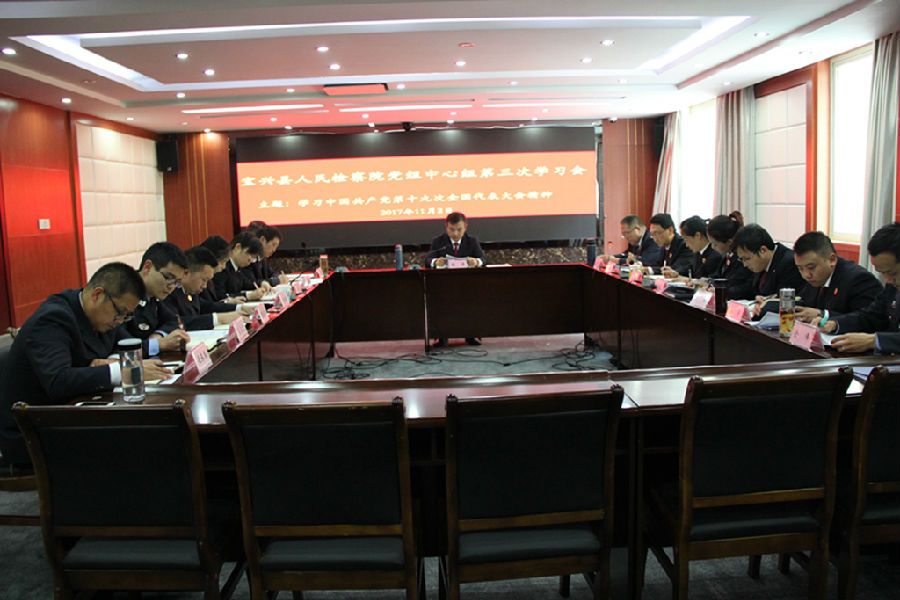 11月2日下午,宝兴检察院党组书记、检察长陶涛主持召开院党组中心组会议,专题学习传达党的十九大精神。院领导班子成员、中层及副科级以上党员干部参加了会议,并结合自身工作实际和学习内容交流了学习收获和学习感悟,会议还对学习宣传贯彻十九大精神作出进一步安排部署。
