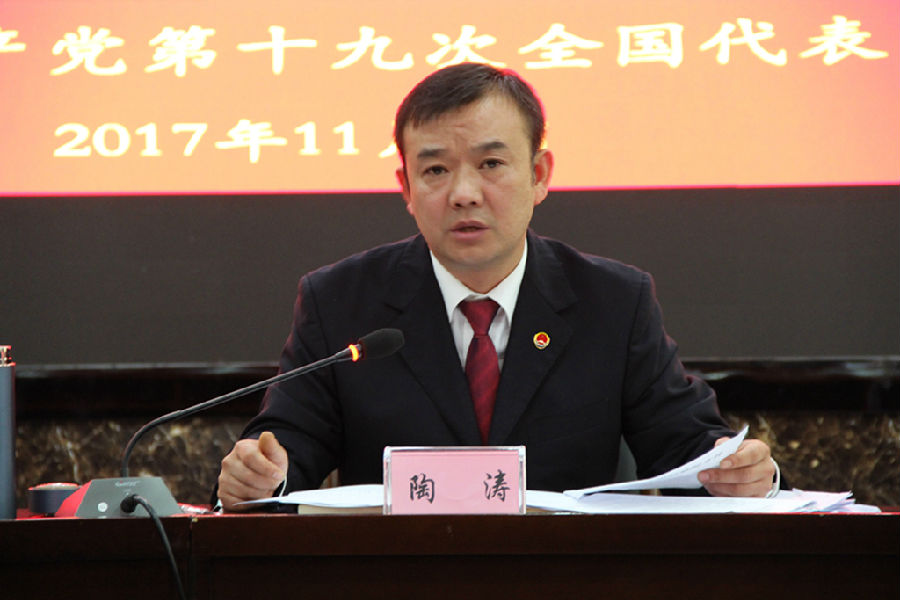 陶涛检察长指出,党的十九大是在全面建成小康社会决胜阶段和中国特色社会主义进入新时代的关键时期召开的一次十分重要的大会。大会分析了国际国内形势发展变化,回顾和总结了过去五年的工作和历史性变革,作出了中国特色社会主义进入新时代等重大政治论断,深刻阐述了新时代中国共产党的历史使命,确立了习近平新时代中国特色社会主义思想的历史地位,提出了新时代坚持和发展中国特色社会主义的基本方略,对新时代推进中国特色社会主义伟大事业和党的建设新的伟大工程作出了全面部署,在党和国家的发展进程中具有极其重要的历史意义。