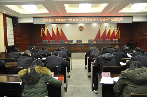 为进一步学习宣传贯彻党的十九大精神, 12月19日,宝兴检察院院举行了“不忘初心 牢记使命”为主题的“学习宣传贯彻党的十九大精神”知识竞赛活动,全体人员参加了竞赛。