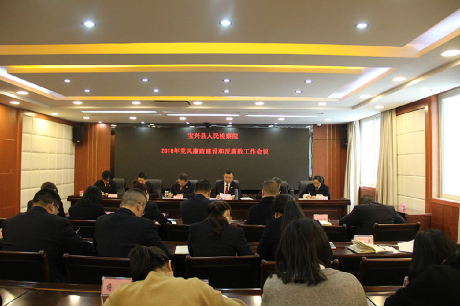 为深入学习贯彻习近平新时代中国特色社会主义思想和党的十九大精神,加强宝兴检察院全面从严治党、党风廉政建设和反腐败工作,开创宝兴检察院党风廉政建设和反腐败工作新局面,根据上级关于加强党风廉政建设和自身反腐败工作的要求,3月15日,宝兴检察院召开2018年度党风廉政建设和反腐败工作会,总结2017年工作中存在的问题和不足,对2018年党风廉政建设和反腐败工作作出安排