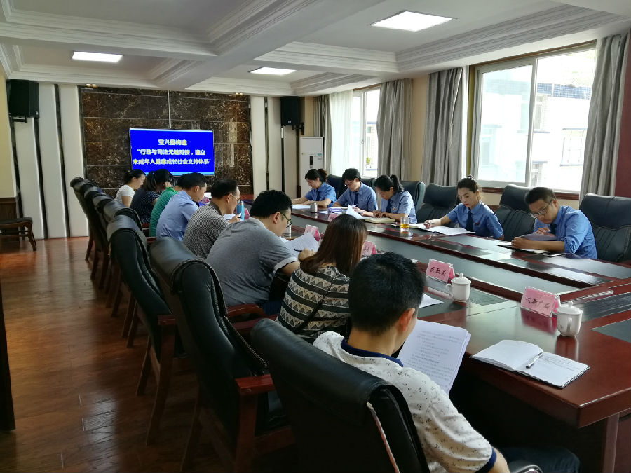 为充分落实最高人民检察院关于未成年人刑事执行、民事行政检察业务统一集中办理试点工作要求,2018年6月29日上午,宝兴检察院会同县政府法制办、团县委、县公安局、县司法局、县教育局、县文体新广局、食品药品监督管理局、县民政局共同商议构建宝兴县未成年人健康成长社会支持体系,目的是利用该院“熊猫贝贝”检察官派驻工作室作用,撬动县上相关职能部门切实肩负起保护未成年人健康成长的职责,与检察机关形成工作合力共同开展好涉及未成年人健康成长的行政执法和刑事司法衔接工作。通过本次联席会,明确了该项工作的线索通报机制、信息共享机制、执法监督机制等。并正式会签了《宝兴县构建“行政与司法无缝对接,建立未成年人健康成长社会支持体系”制度实施意见》。实现行政与司法无缝对接,共同构建未成年人健康成长的社会支持体系。