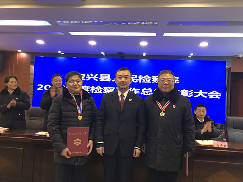 会上,党组成员、副检察长苏明高宣读了院党组关于对2018年度先进科室、先进个人通报表扬的决定,2个先进集体及3个先进个人受到表彰。院党组希望受到表彰的先进集体和个人珍惜荣誉,戒骄戒躁,把荣誉作为新的起点和动力,引领和带动其他同志在今后的工作中取得更大的成绩,并号召全院干警要以先进为榜样,牢固树立争先创优意识,切实转变工作作风,提升履职效能,努力为宝兴检察再创佳绩、再立新功。院领导还为该院被高检院授予“检察荣誉章”的从检满30年的老同志颁发了荣誉章和证书,感谢他们长期以来为检察事业所做出的贡献。