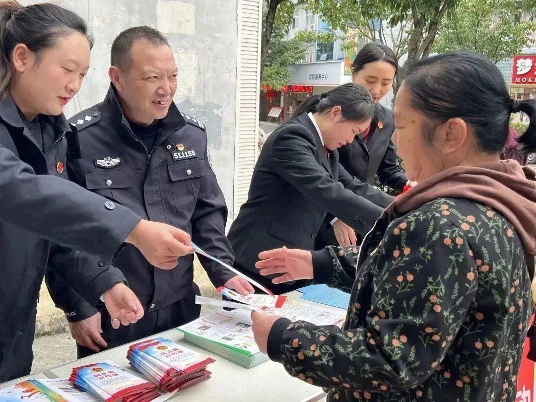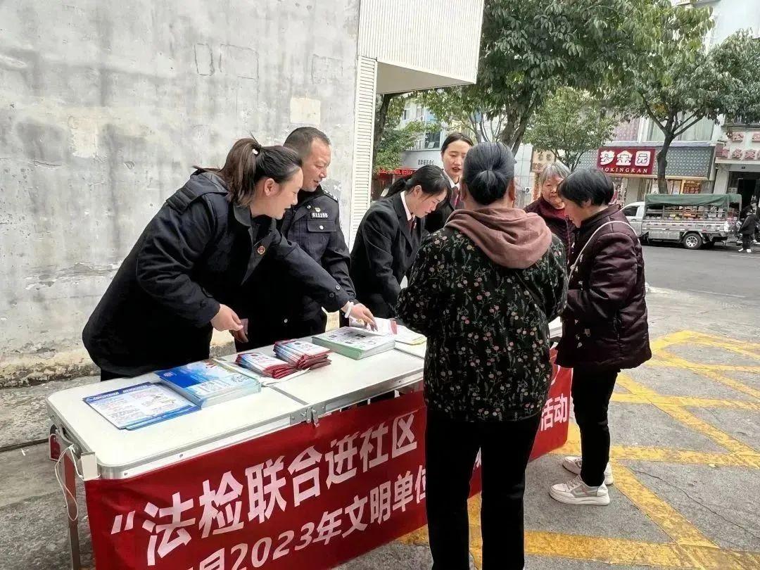 为充分发挥文明单位的示范引领作用,广泛开展志愿服务活动,全面助力文明城市创建,2月28日下午,省级最佳文明单位汉源县人民检察院、市级文明单位汉源县人民法院,在汉源县富林镇供销社小区,联合开展了汉源县2023年文明单位助创城“法检联合进社区 普法宣传入家门”志愿服务活动,用法治力量守护人民群众美好生活。
