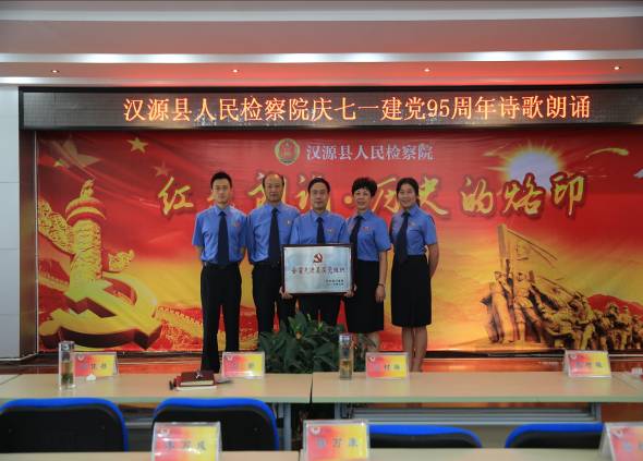 汉源县人民检察院党总支、党支部在上级党委和院党组的指导下,狠抓基层党组织建设工作,全体党务工作者和党员干警齐心协力、努力工作,服务大局,圆满完成了各项工作任务,经上级党委推荐评选,2016年6月30日,被四川省委评为“全省先进基层党组织”。