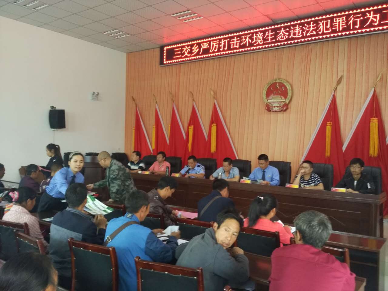 为提升公民的生态环境保护意识,守护汉源青山绿水,近日,汉源县检察院联合县林业局、县农业局、县水务局、县环保局、县国土局等单位深入宜东镇、三交乡,开展以“严厉打击环境生态违法犯罪行为”为主题的环境保护法制宣传。
