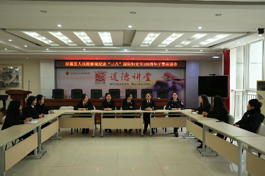 一是召开座谈会,为全体女干警送上节日问候。在第108个“三八”国际劳动妇女节即将来临之际,院妇委会女主任代吏蓉同志组织全院女干警召开了座谈会,会上,代吏蓉同志总结了2017年度妇委会的工作开展情况,特别是对女干警为检察工作作出的贡献给予了充分的肯定,认真听取了女干警对妇委会工作的意见和建议,提出了2018年汉源检察院妇委会工作的要求和重点。妇委会代表院党组为全体女干警送上了节日的慰问和祝福,也提出了对全体女干警的殷切希望,希望女干警在院党组的领导下,充分发挥自身优势和作用,以习近平新时代中国特色社会主义思想为指导,发扬“汉检”精神,不让须眉再建新功。