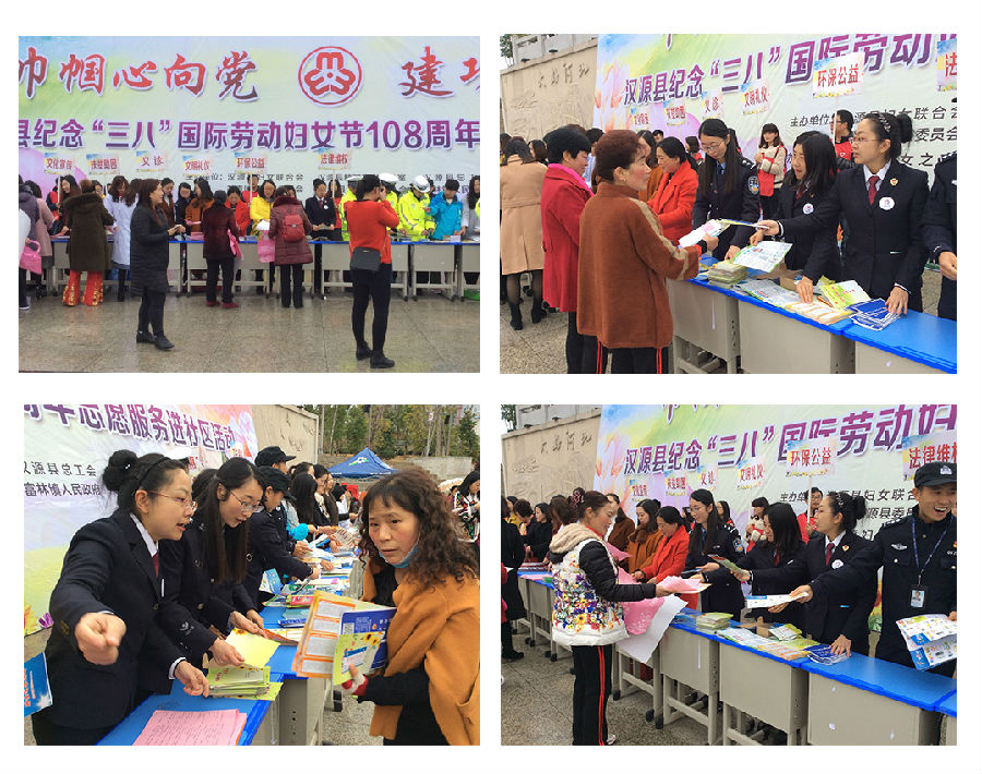 四是志愿服务进社区,法制维权在行动。3月7日上午,汉源检察妇女志愿服务小分队走进富林镇社区开展志愿服务,与县妇联及相关成员单位一起,通过文化汇演、主题宣讲、宣传咨询、志愿服务等形式宣传妇女儿童的权利、义务以及依法维权的途径,引导广大妇女知法、懂法、守法、用法,激励广大妇女群众在习近平新时代中国特色社会主义思想的指引下,与新时代同行、为新目标奋斗、在新征程建功、做新时代新女性。