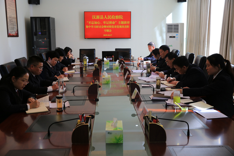 10月17日,汉源县人民检察院党组书记、检察长、主题教育领导小组组长兰树林主持召开了党组中心组 “不忘初心、牢记使命”主题教育第三次集中学习研讨(扩大)会暨对照党章党规找差距专题会。院领导班子成员、主题教育领导小组及办公室成员参加会议。