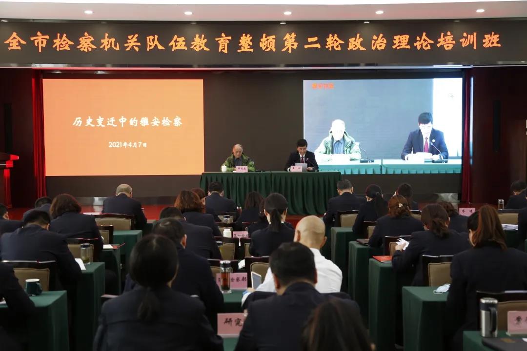 为迎接中国共产党建党100周年、人民检察制度创立90周年,扎实推进党史学习教育走深走实,4月7日下午,雅安市检察院举办全市检察机关队伍教育整顿第二轮政治理论培训班。全市两级院领导班子成员和全体检察人员参加培训。