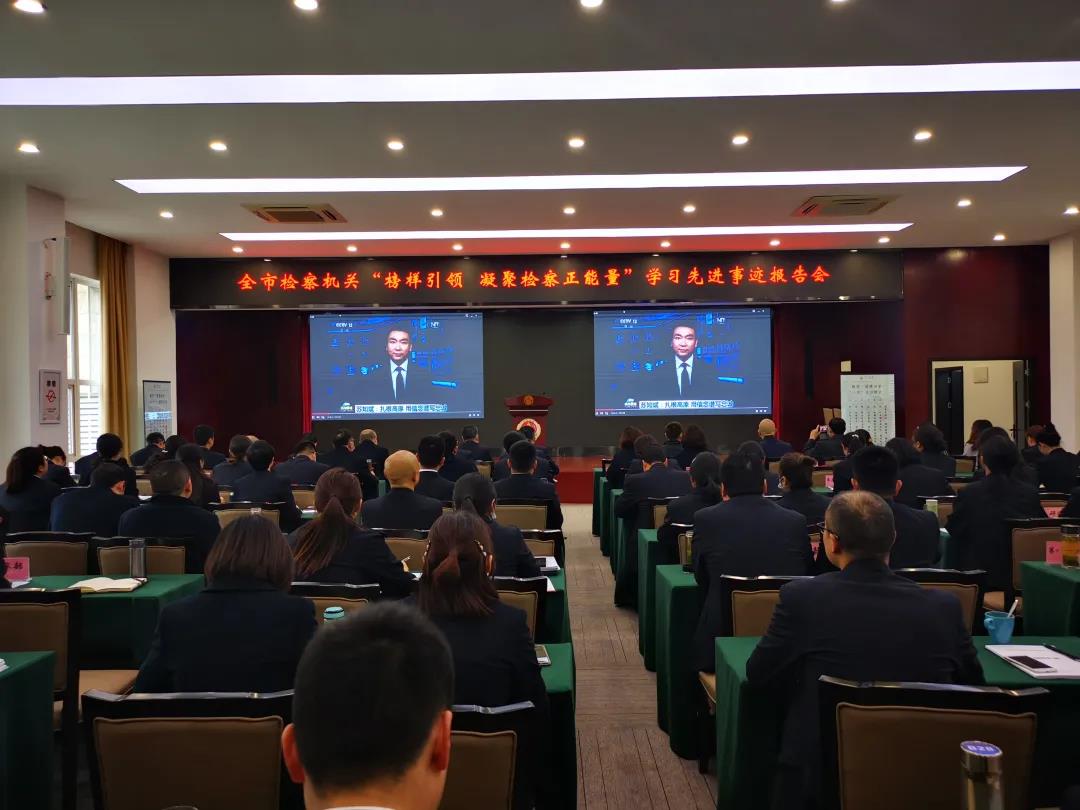 榜样引领 凝聚检察正能量”学英模事迹报告会在市检察院举行,省政法队伍教育整顿第十六驻点指导组副组长李明全一行出席报告会。全市检察机关400余名检察人员及聘用制书记员、劳务派遣人员,在主会场和各县区院分会场集中观看了英模事迹专题片,收看了事迹报告会。