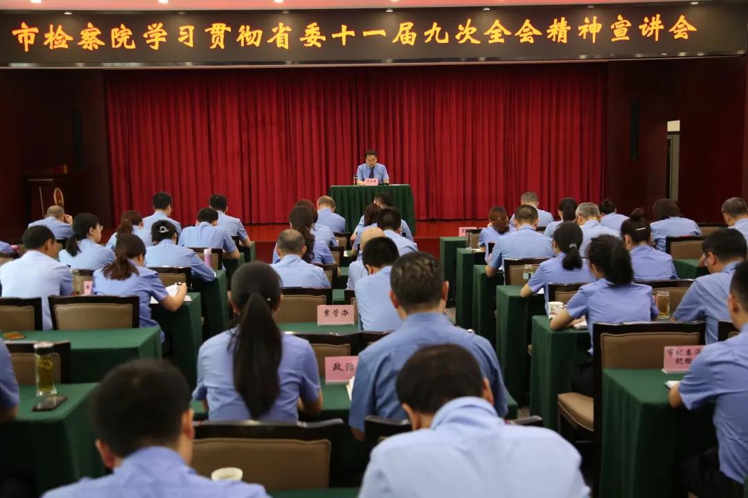 近日,市检察院召开全院干警大会,传达学习省委十一届九次全会精神,安排部署贯彻落实工作。