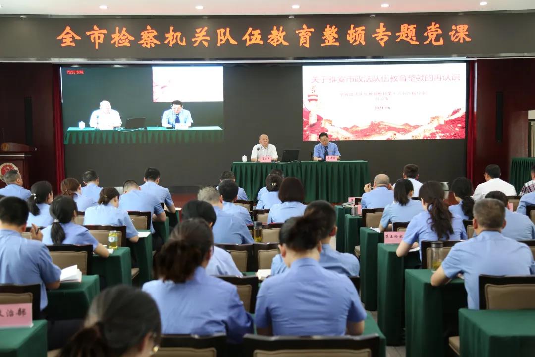 610日,雅安市检察院邀请全省政法队伍教育整顿第十六驻点指导组组长肖立军为全市检察机关讲授专题党课。党课学习由雅安市检察院党组书记、检察长范文清主持,省政法队伍教育整顿第十六驻点指导组副组长李明全、检察专班谢涛、魏永江及全市两级检察机关全体检察人员参加党课学习。党课学习以视频形式开至各县区检察院。