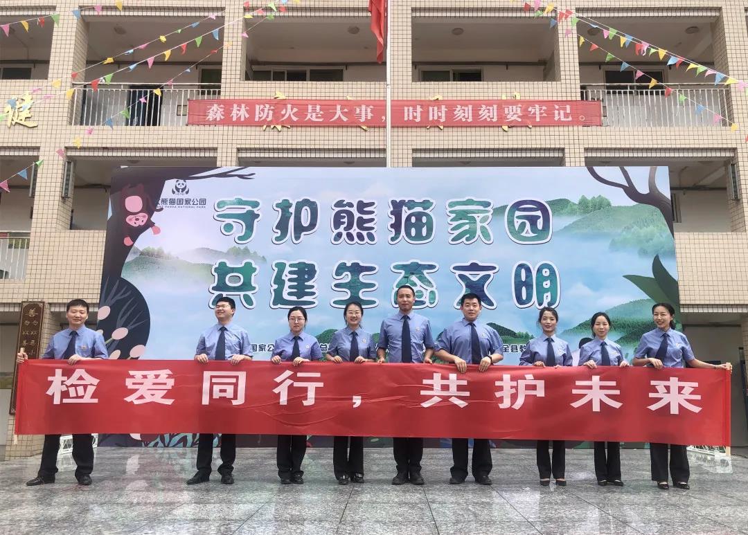 2021年6月4日,雅安市院及第一片区四院来到了天全县思经小学开展了“守护熊猫家园,共建生态文明”生态保护暨“检爱同行,共护未来”检察开放日活动。