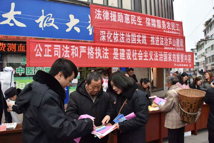 2019年12月4日是我国第6个国家宪法日,为进一步弘扬宪法精神,维护宪法权威,向群众普及宪法知识弘扬宪法精神。昨日上午,芦山县人民检察院执检、公诉、技术等部门干警走上街头,会同公安、法院、司法等部门开展了以“弘扬宪法精神,推进国家治理体系和治理能力现代化”为主题的集中宣传活动。
