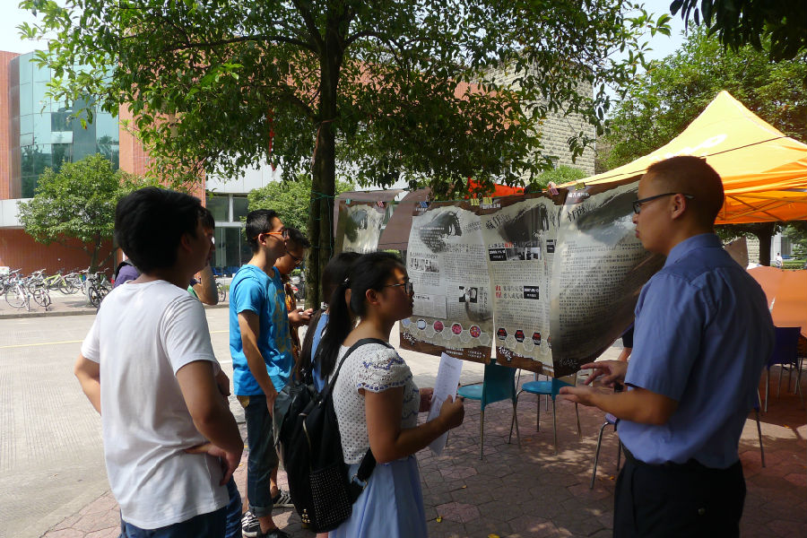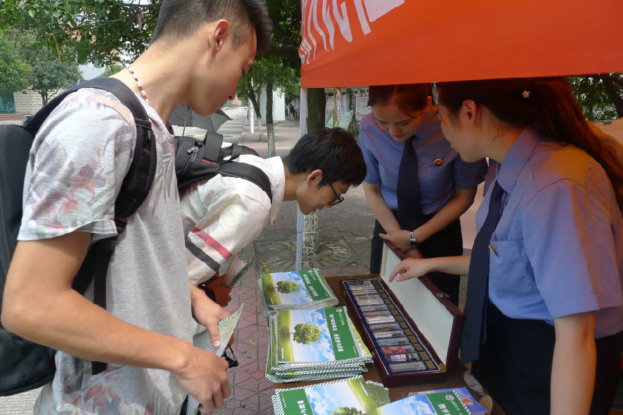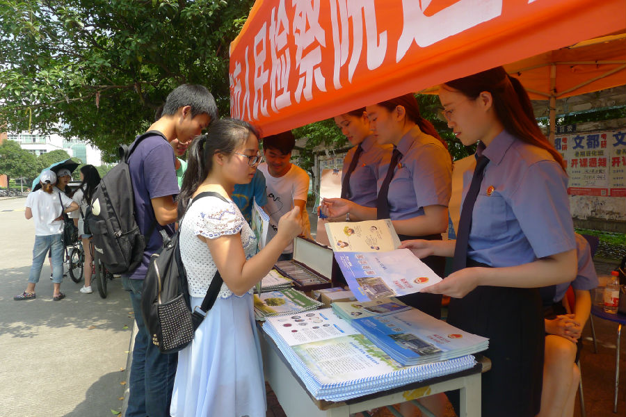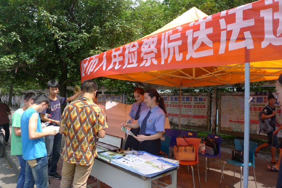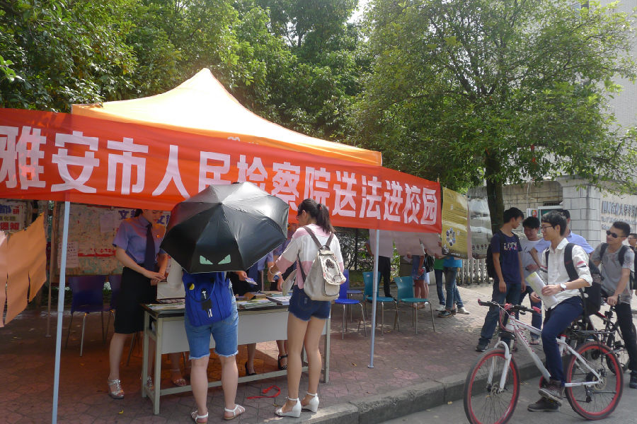 向大学生发放雅安市检察院检务公开手册等宣传资料