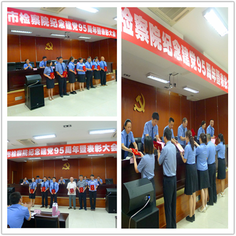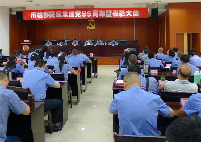 6月30日,市检察院召开纪念建党95周年暨表彰大会。党组成员、副检察长万敏作讲话,党组成员、副检察长赵学东宣读2015年度表彰决定,党组成员、机关党委书记庄萍主持会议。会议对市检察院机关先进党支部、优秀党务工作者、优秀共产党员进行表彰,先进党支部代表、优秀党员代表作了发言。会议在全体党员干警齐唱《没有共产党就没有新中国》的嘹亮歌声中圆满结束。