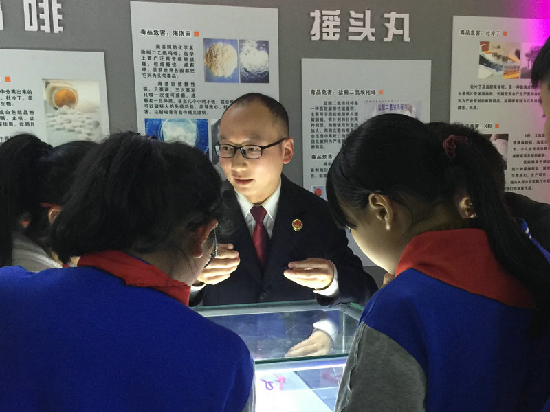 在本次活动中,名山区检察院充分依托禁毒教育基地辐射教育作用,在学校安排下,组织二中在校师生300余人集中进行参观学习。该院公诉科干警引领学生们从毒品种类、吸食毒品危害、常见毒品的属性、常见吸毒方式、防范技巧、法律规定和典型案例等方面一一参观讲解,尤其是典型案例的剖析,让同学们心灵深受震撼,识毒、拒毒、防毒意识和能力进一步增强。在互动体验区,学生们还饶有兴趣通过拼图互动来检验自己的收获。参观结束后,学生来到学术报告厅,该院检察官和区公安分局禁毒部门民警向学生们发放禁毒宣传资料,并根据青少年生理和心理特点,分别从毒品知识的普及、如何增强抵御毒品能力以及涉及毒品方面的法律规定向学生们做了详细的讲解。