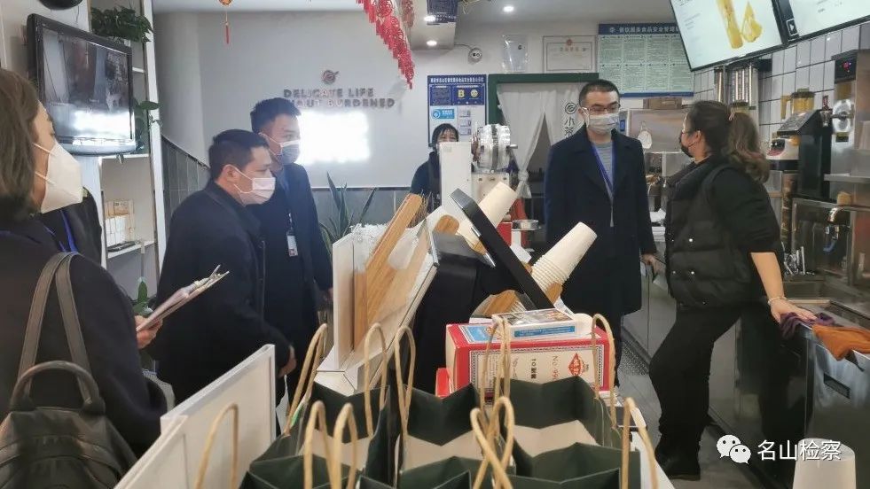 三是保障舌尖安全,重点监管群众食品安全。名山区检察院通过与区市场监管局等部门一起开展联合检查,就城区奶茶店、小食店等餐饮企业,了解各店铺的防疫举措,检查了从业人员的健康证,实地查看了后厨操作间、库房等的环境卫生,并重点核查了各商铺的原材料的进货台账和生产日期、保质期,确保过期、变质食品不流入市场。通过联合大检查工作,检查组一行对部分商家存在原材料即将过期、从业人员健康证、食品经营许可证未公示和出现部分人员聚集的情况等问题提出了整改意见,要求商家在有序复产复工的同时严格落实好食品安全规定,确保老百姓吃得安全。