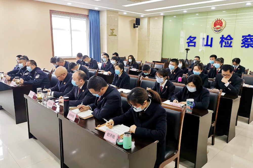 3月5日上午,名山区检察院检察队伍教育整顿动员部署会召开,会议传达学习了全国、全省政法队伍教育整顿动员部署会议以及全国检察机关党风廉政建设工作会议暨检察队伍教育整顿部署会议精神,对名山检察队伍教育整顿工作作出安排部署。院党组书记、检察长李宣勇主持会议并作动员讲话,全体检察人员参加会议。