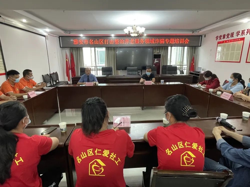 为切实解决好老年群众最揪心最烦心的问题,有效防范涉养老服务领域诈骗案件的发生,切实保护广大老年群众财产安全,护好老年群众的“钱袋子”。近日,名山区检察院到区民政局为区养老服务中心、德福养老综合体等名山养老机构开展打击整治养老服务领域诈骗专题培训。