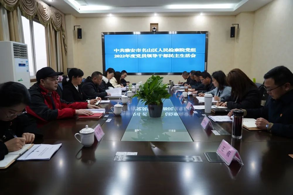 2月7日,名山区检察院党组召开2022年度党员领导干部民主生活会。市检察院党组成员、机关党委书记李宣勇、检务督察部主任郑渝、三级高级警长李茂强、政治部宣传处副处长陈鹏远、区委政法委副书记万萍、区委组织部部务委员黄景及区纪委派驻区委政法委纪检组干部李小翊等同志到会指导,名山区检察院党组书记、检察长郝连忠主持会议。