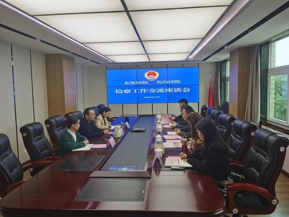 名山区检察院一行实地参观学习了东坡区检察院“四有四争”党建工作阵地、“冰锋”“同心”“蓝朵朵”“唐校长”等专业化办案团队,详细了解了“东坡检影”新媒体工作室建设的相关情况。