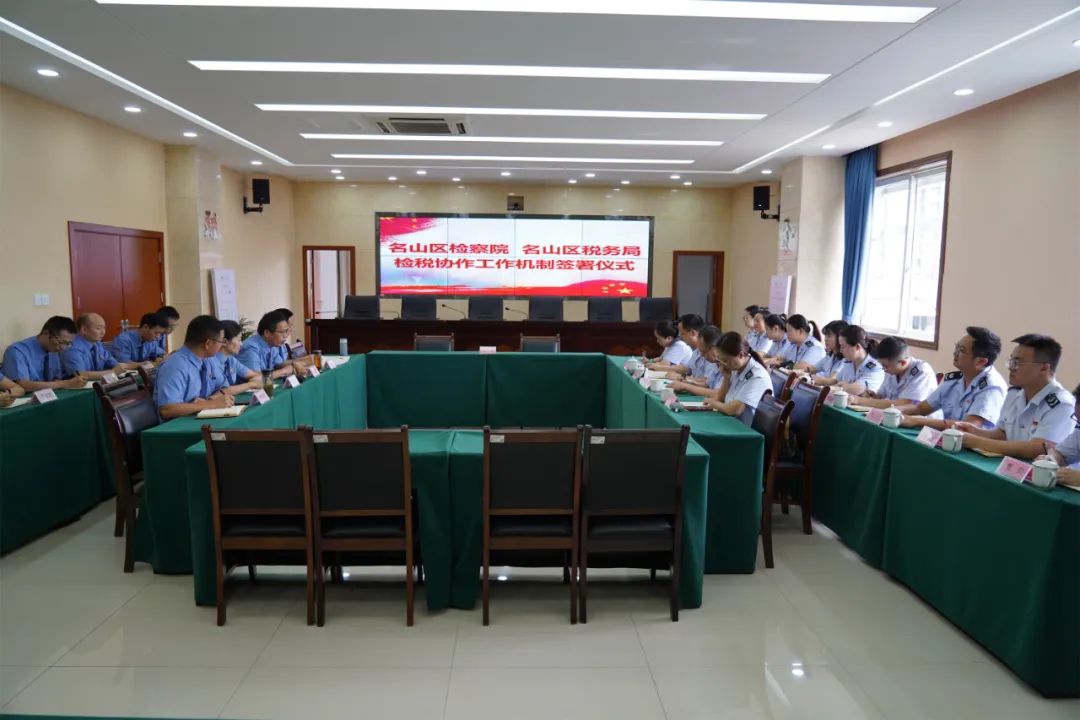 为进一步加强检税交流互动,统一刑事司法和行政执法理念,切实解决涉税领域检税双方工作中存在的执法司法突出问题。8月28日,名山区检察院与区税务局举行检税合作协议签署仪式暨工作联席会议。名山区检察院检察长郝连忠、区税务局局长王雅各等人出席会议。