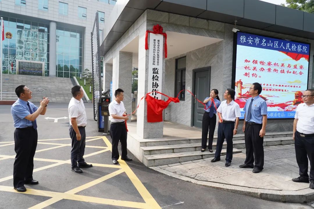 为全面贯彻党的二十大精神,强化检察机关与监察机关办案衔接和配合制约,名山区监委、名山区检察院积极探索创新,联合打造建设“监检协作中心”,履行职务犯罪案件的衔接协调、线索移送、调查侦查等工作职责。9月7日,“雅安市名山区监检协作中心”揭牌仪式在名山区检察院举行。雅安市名山区委书记余云峰,雅安市纪委副书记、监委副主任冯伟良,雅安市人民检察院党组成员、副检察长张杰出席仪式并讲话。雅安市监委委员竹倩,名山区委常委、区纪委书记、监委主任王大勇,名山区检察院党组书记、检察长郝连忠以及雅安市纪委监委、雅安市检察院、区委政法委有关领导同志出席揭牌仪式。