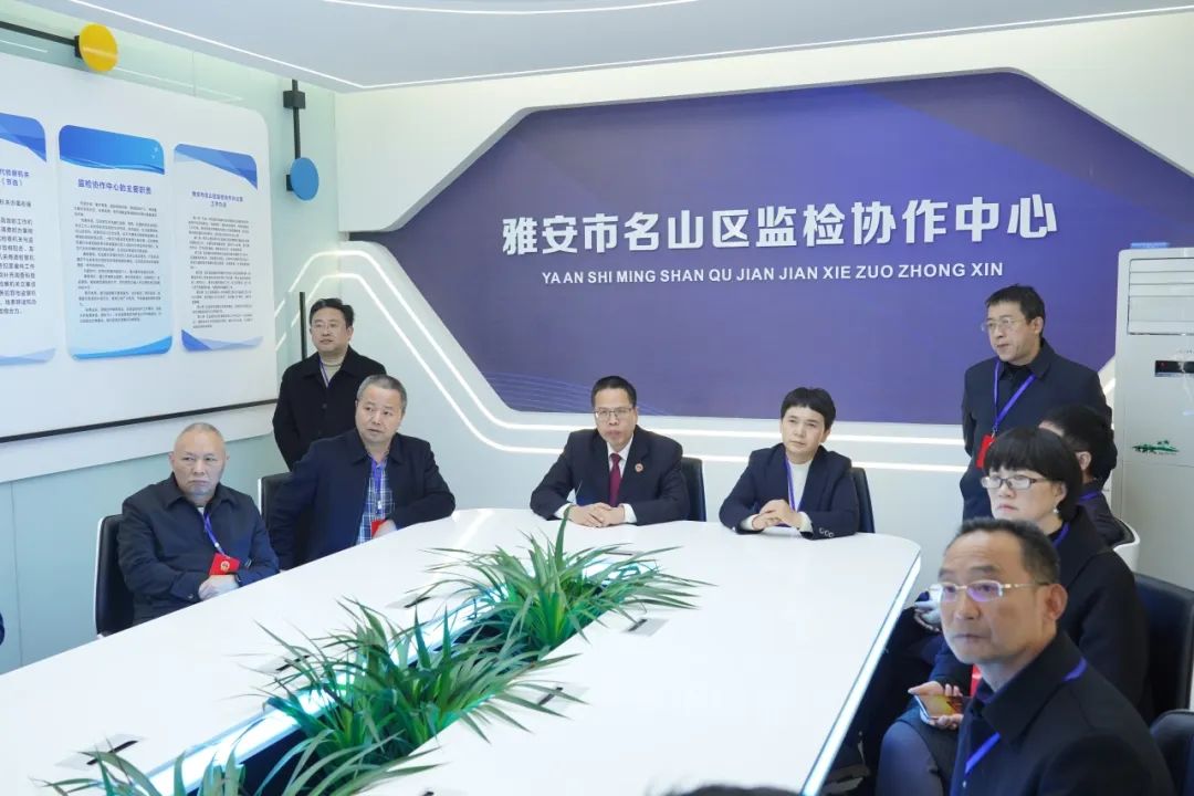 在调研中,高佳秀一行先后走进青少年法治教育基地、监检协作中心等场所,听取了名山区检察院近年来开展未成年人综合保护、创新打造监检协作中心助力反腐治理成效等工作的介绍,并在召开的座谈会上,听取名山区检察院党组书记、检察长郝连忠关于名山区检察院近三年刑事检察工作开展情况。