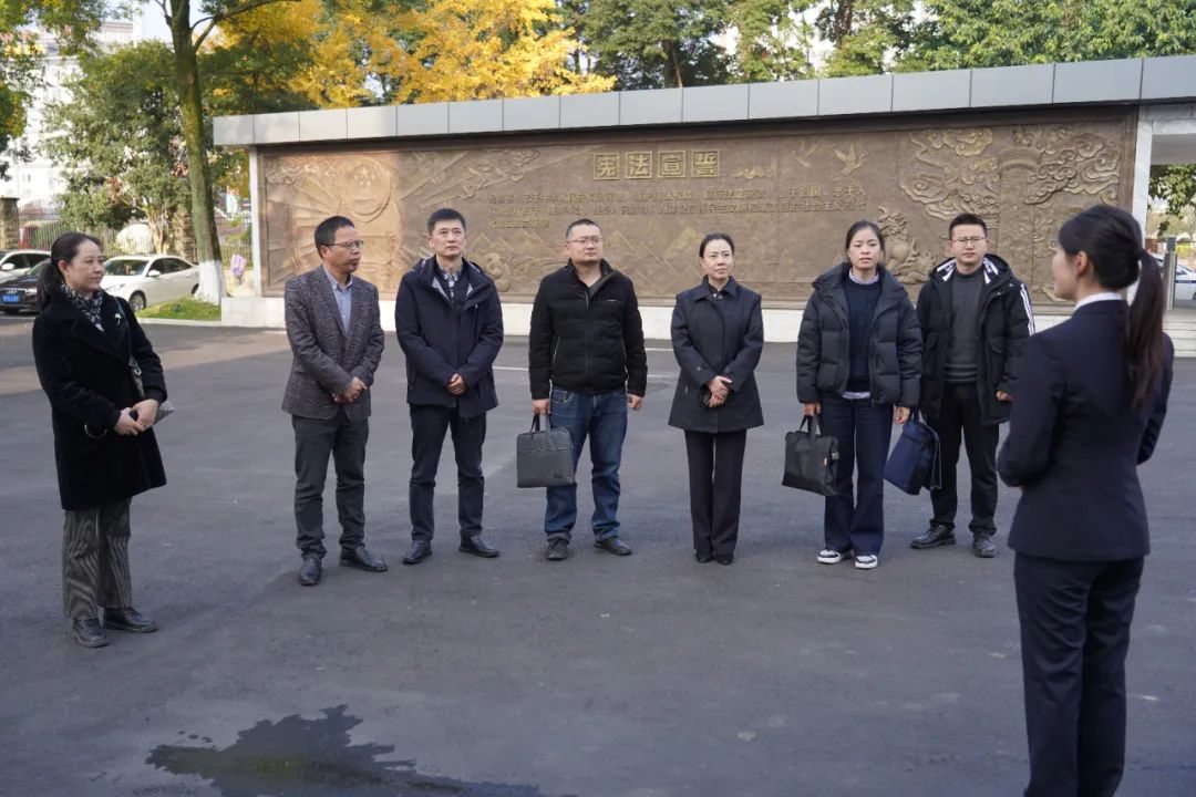 考察组一行人实地参观了12309检察服务中心、青少年法治教育基地、廉政教育基地、法润名山·法治文化长廊、监检协作中心、党员之家、“茶德·博法”研学室等场所,并召开座谈会。