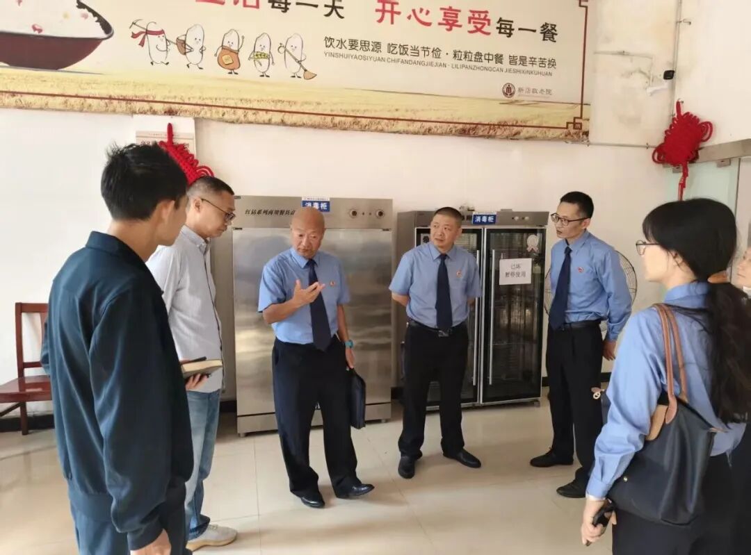 活动人员在养老服务中心,通过查看餐厅、后厨工作区、库房等区域,针对前期公益诉讼办案中发现的食品安全问题点位,进行“一对一”跟进监督整改情况,确保问题整改到位,依法保障食品安全,全力守护老年人生活安全线。同时,检察干警向养老中心老人发放普法宣传资料,重点讲解与老年人生活息息相关的防范养老诈骗、个人信息保护、食品药品安全等方面的法律法规,并围绕老年人关心的监护、赡养、继承等问题进行了详细解读,对老人们提出的问题现场答疑解惑,互动普法。活动中,活动人员还查看了消防设施、无障碍设施、安全监控等方面的配置使用情况。