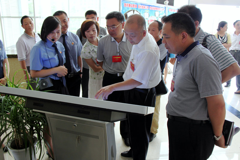 应邀人员在参观了区院案管大厅、控申接待室、办案工作区、侦查指挥中心后,还观摩了案管中心统一业务应用系统的操作运用和行贿犯罪档案查询的过程;通过互联网进入区院门户网站查看网站内容和案件信息公开系统公开的重要案件办理情况,并亲自体验触摸式查询机查看相关检务公开的信息。随后进行了座谈交流。