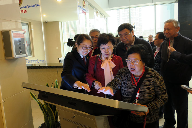 代表团一行先后视察了名山区检察院办案工作区、侦查指挥中心、视频会议室、远程视频讯问室以及学习室、荣誉室等,听取了该院开展职务犯罪侦查和预防、刑事诉讼监督以及检务公开、农民工青少年维权、科技强检、人才强检等工作情况的介绍。视察过程中,香港代表针对检务公开广度、检察宣传深度、公正司法认可度等多方面提出了一系列问题,在检察人员的认真讲解下均得到了满意的答案。代表团对名山区检察院积极深化阳光检务、服务灾后廉洁重建、推近平安法治名山建设等作出的努力以及先后两次获得“全国先进基层检察院”称号、当选全省“我最信任的基层政法单位”等荣誉给予了充分肯定。