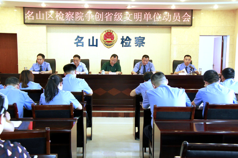 6月20日,名山区检察院召开创建省级文明单位动员大会,党组书记、检察长李宣勇在会上对创建工作进行了动员部署。雅安市文明办副主任李祥、名山区委宣传部常务副部长、文明办主任代显明应邀到会指导。会议由党组成员、副检察长倪一航主持,全体干警出席会议。