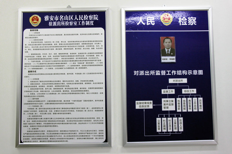 为确保驻所监督工作规范性开展,名山区检察院还联合区公安局制定出台了《雅安市名山区人民检察院 雅安市公安局名山区分局关于派驻检察室开展对公安派出所刑事侦查活动监督协作工作的实施意见》。选派业务熟练、经验丰富的3名检察官作为驻所监督员负责具体工作。同时明确派驻检察室的监督工作原则、工作机制、监督范围、监督方式和工作要求。派驻检察室着重履行三个方面的职责:一是立案监督。开展对应当立案而不立案或者不应当立案而立案的监督,重点是违法插手民事、经济纠纷以及群众反映强烈、影响社会稳定的案件。二是侦查活动监督。重点开展取证程序监督、强制措施监督和个案专项监督。三是引导侦查取证。通过提前介入侦查,以事实和证据角度,提出侦查取证的建议,同时强化对规范侦查行为的监督。