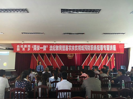 2016年5月4日,石棉县检察院青年干警以“五四”青年节为契机,结合“依法治县”和“法律八进”工作主题,深入开展“法律进机关”活动,到新民藏族彝族乡面向全体乡村组干部开展惠农扶贫领域预防职务犯罪专题讲座。