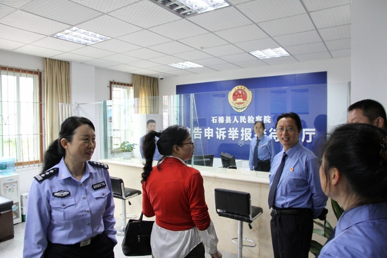 继全县政法系统内务规范化建设现场推进会在县公安局召开后,为全面深入推进内务规范化建设,10月9日,石棉县政法委政治处姜主任带领公检法司一行到检察院督导检查内务规范化建设工作,副检察长王永慧带领在院党组成员和办公室、技术科工作人员全程陪同检查。
