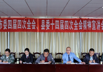 吴超平为参会人员解读了市委四届四次全会审议通过的《中共雅安市委关于深入贯彻省委十一届三次全会精神加快建设绿色发展示范市的决定》,并解读了县委十四届四次全会的重大意义、主要内容、重要决策,对纵深推进全面从严治党、巩固发展良好政治生态、践行绿色发展理念、构建绿色发展新格局等八大方面进行了诠释。