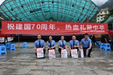 为深入贯彻落实党的十九大关于实施健康中国战略精神,进一步确保石棉县临床用血足量安全,在全县营造无偿献血光荣的社会氛围。2019年9月4日,石棉县人民检察院组织5名志愿者参加了以“庆祝建国70周年,热血礼赞中华”为主题的无偿应急献血活动。