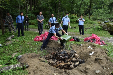 2019年6月10日,石棉县人民检察院派员现场监督,对一起已判决的非法收购珍贵、濒危野生动物制品案涉案的29具藏酋猴猴骨和4只黑熊熊掌进行依法销毁。