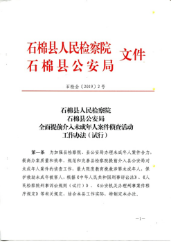 为切实保障涉罪未成年人的合法权益和及时救助未成年被害人,4月16日,石棉县检察院牵头会签了《石棉县人民检察院、石棉县公安局全面提前介入未成年人案件侦查活动工作办法(试行)》(下简称《办法》)。