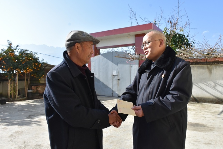 1月12日,在新春佳节即将来临之际,石棉县人民检察院党组书记、检察长吴超平到美罗镇开展走访慰问活动,向部分困难党员、老三职干部和贫困户送去了生活用品及慰问金,并提前向他们致以新春的诚挚问候和美好祝福,将党和政府的温暖送到群众的心坎上。