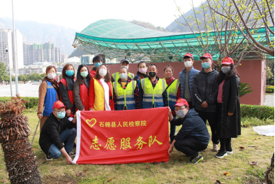 乍暖还寒、春回大地,为推进城乡绿化、改善人居环境,有效提高建绿、爱绿、护绿意识,在我国第42个植树节来临之际,县检察院与县城建局园林管理所修枝队、西区社区志愿服务队联合开展了以“护花爱草共植绿”为主题的花草修剪养护活动,与党员双报到活动高效结合,进一步提升党员重视环境保护和花草树木爱护工作。