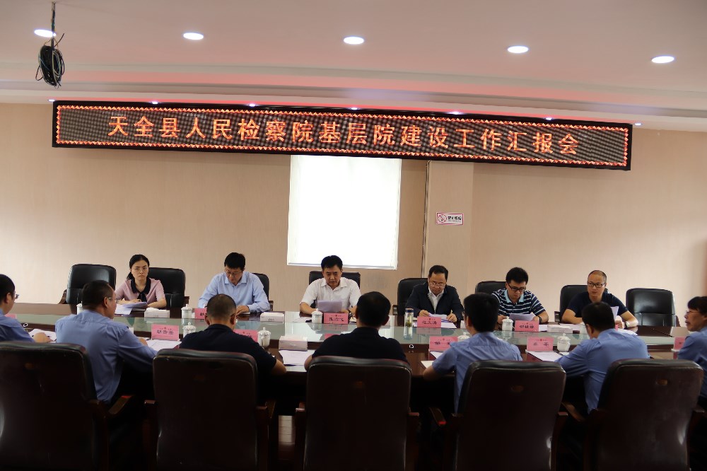 三是要进一步深化基层院建设,筑牢检察工作发展根基。要把握好天全县院分别被最高检、省检察院确定为“基层检察院建设联系点”这一有利契机,要以更高的标准,主动思考谋划推进基层院建设,加强工作汇报,积极争取党委、政府和上级院的支持,加快办公办案场所改造,不断深化科技强检战略,提升机关管理规范化和办案信息化水平。要树立长远目标,以“三培育三引领”活动为抓手,着力培育特色检察产品,积极争创全省先进基层检察院。