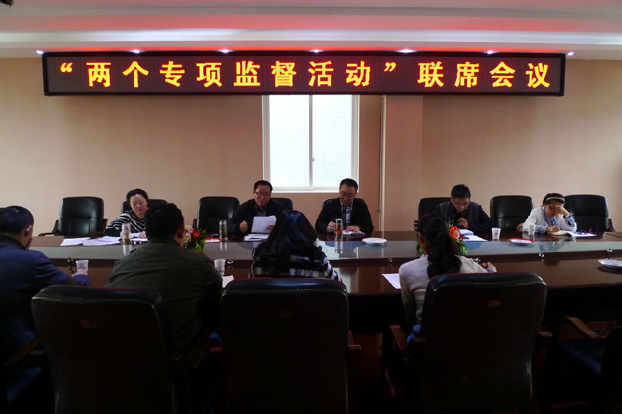 4月14日上午,我院与县法制办共同牵头,组织公安、国土、环保、水务、农业、林业、工商和质量技术监督、食药监等八家行政执法单位召开了“两个专项监督活动”联席会议。会议由我院副检察长胡贵强主持,党组书记、检察长刘奇及八家成员单位分管行政执法的领导参会。
