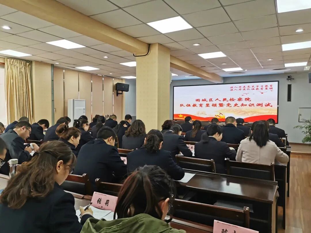 全国政法队伍教育整顿工作开展以来,雨城区检察院高度重视,精心组织、周密安排,紧扣“三个环节”“四项任务”,在不折不扣抓好政治教育、党史教育、警示教育、英模教育“四项教育”的基础上,开展“干部作风大整治”“干部绩效大测评”,“4+2”筑牢政治忠诚,努力拓宽学习教育的深度和广度,促进教育整顿提速升温、学习教育提质增效。 1 坚持把政治教育放在首位,贯穿始终,广泛开展政治轮训。依托编制的《学习参考手册》和购买的《习近平谈治国理政》等书目,制定了学习教育任务清单,依托党组中心组领导带头学、专题培训集中学、部门例会早上学、支部主题党日分享学,迅速让思想“热起来”完成必学内容的学习。先后组织全院集中学习5次、党组中心组(扩大)学习3次,集中讨论3次。党组书记、检察长讲党课1次,党组副书记讲党纪党规专题培训1次,机关党委书记讲党课1次。组织干警参加市委、区委和市院组织的市委、区委书记讲党课52人次,参加各级检察机关组织的政治学习143人次。 妥善处理工学矛盾,开展灵活形式的学习,依托“三会一课”开展支部集中学习9次,各部门在周例会上学习8次,日课学习20次,以时间保障学习质量,确保规定学习篇目全部完成。为检验学习效果“人人过关”,我院组织开展队伍教育整顿应知应会知识闭卷测试,全体干警考试成绩总体优良。针对因出庭、会议冲突等未参加集中学习的干警,我院进行了集中补课,针对请病假在家的干警,派专人进行个别辅导,确保学习覆盖率100%。 同时边学边总结学习阶段的经验成果,编发工作经验总结7篇,被市、区教育整顿办转发5篇,市院教育整顿办转发2篇,为教育整顿后的常态化政治轮训积累经验,结合“大学习、大走访、大调研”,已完成调研报告3篇,申请社科联立项7篇。 2 坚持把党史学习教育作为教育整顿的重点内容,强化党建引领,在微信公众号开设“党史百年天天读”专栏,印发了《雨城区检察院关于开展“雨检之声|我读党史给您听”活动方案》,推出“入耳”云端课堂,干警朗读党史小故事谈心得感悟,实现学习阵地拓展到“网上”,学习范围延伸至“线上”,该做法被区委采编成信息转发全区推广。 利用红色资源开展革命传统教育,组织党员干部52人次分赴荥经烈士陵园、胡长保纪念馆、飞仙关大桥、红四方面军三十军司令部旧址、天全县红军纪念馆开展“传承红色基因,践行训词精神”主题党日活动3次,通过重温入党誓词、唱红歌、诵红诗等形式,接受革命传统教育,缅怀党的丰功伟绩。 开展“雨检论坛”13期,组织干警上讲台分享学习心得,通过“以讲促学”的方式倒逼干警知识积累、语言表达、综合能力的提升,实现教育整顿促素质能力进一步增强的目的。 3 坚持以案为鉴、以案明纪、以案促改,召开队伍教育整顿第一次警示教育大会,通过对发生在雅安政法系统的7起违纪违法典型案例进行剖析,分析诱因根源,讲清危害后果,引导干警以案明纪、引以为戒,让干警从内心深处受到警醒。 组织观看《民心之蠹》警示教育片1次,观看职务犯罪案件庭审录播1次,组织干警聆听区纪委书记作廉政报告会44人次,检察长对干警集体谈心谈话1次,讲深讲透“自查从宽、被查从严”政策,增强干警自查自纠的自觉性和坚定性。 4 坚持发挥榜样引领作用,组织观看《榜样》等英模事迹宣传片3次,制定了《雨城区人民检察院青年干警“跟班先进找差距、学思践悟促提升”活动方案》,确定了2名获省级以上表彰的先进个人为跟班对象,近三年新进干警2名为跟班人,“一对一”“面对面”向跟班对象学习。 召开“聆听英模故事•弘扬英模精神”为主题的英模事迹报告会,会上集中观看英模视频,选塑英模5人分别讲述自己在平凡工作岗位上无私奉献、爱岗敬业、信念坚定的先进事迹,参会人员认真查找不足,并明确整改方向和措施。 5 为切实抓好省委第二巡视组巡视反馈意见和省院第三巡察组巡察反馈意见整改工作与队伍教育整顿的统筹推进,从严监督管理检察队伍,促进广大检察干警廉洁从政,我院决定在全院开展为期一个月的干部作风集中整治,出台了《雨城区人民检察院干部作风集中整治工作方案》,开展考勤考纪督查5次,检察长带队督察1次,远程视频庭审督查8次,为队伍教育整顿查纠整改环节打好基础。 6 为避免教育整顿和检察工作“两张皮”,激励干警在攻坚克难上争先创优、苦干实干、勇于担当,院党组决定对所有干部实行月考核制度,制定了《雅安市雨城区人民检察院检察人员平时考核工作实施方案》,推行“按月考核”,考核结果与干警业绩考核、绩效奖金、评先评优、职务晋升挂钩,通过量化考核,立标激发先进、发挥先锋引领,形成“你追我赶”的良好氛围。
