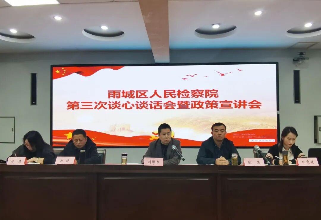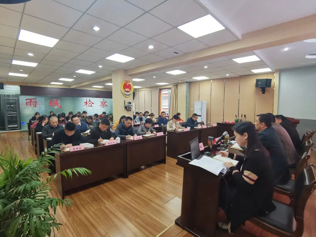 4月19日上午,雨城区院召开队伍教育整顿第三次谈心谈话会暨政策宣讲会。区院全体检察干警参会,党组书记、检察长陶涛主持会议。
